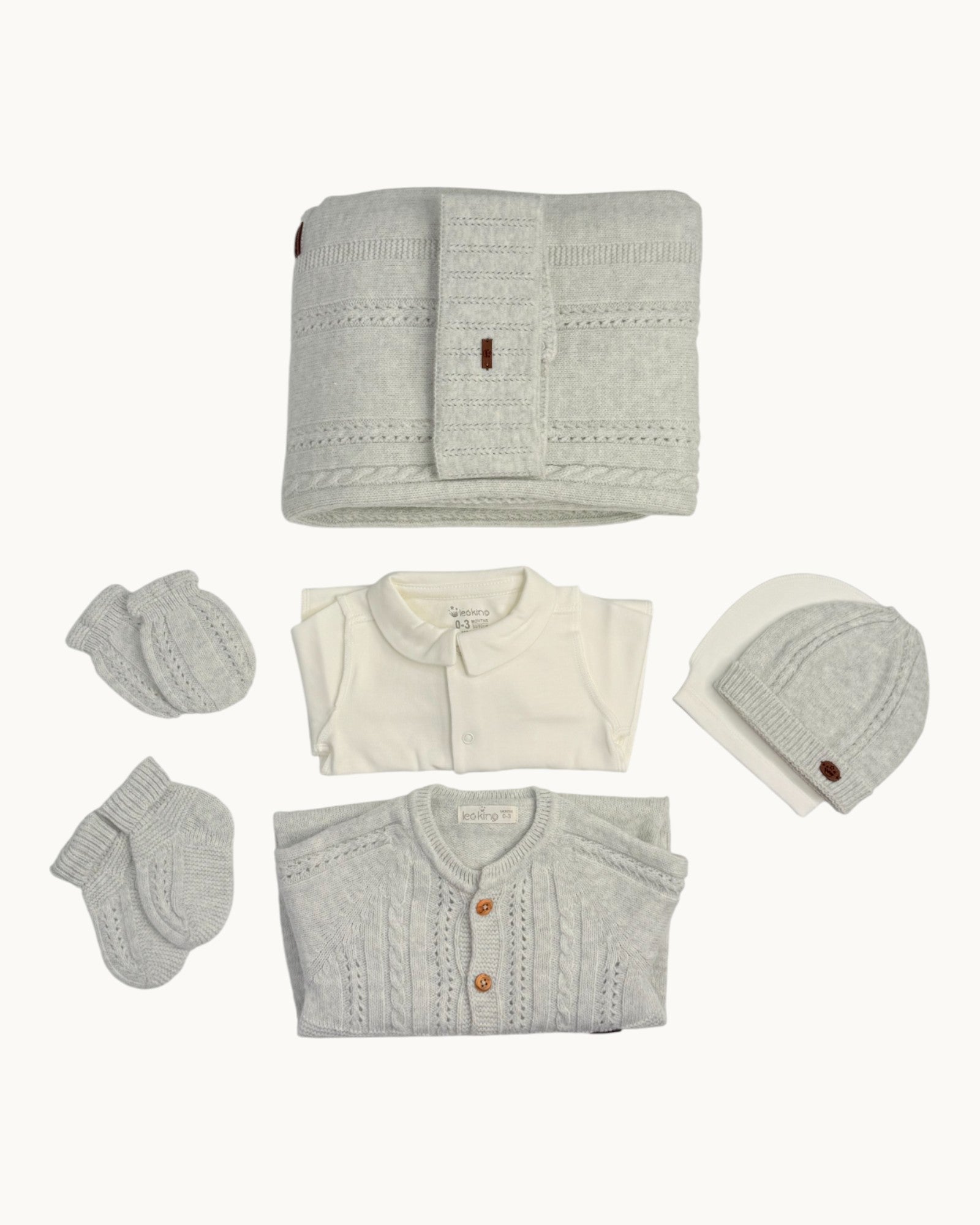 Welcome your little one in cozy comfort and timeless elegance with this beautifully crafted newborn hospital set. Thoughtfully designed for baby’s first days, this complete ten-piece set combines soft knitted textures, delicate details, and a classic neutral palette—perfect for hospital stays, first photos, and cherished moments at home.